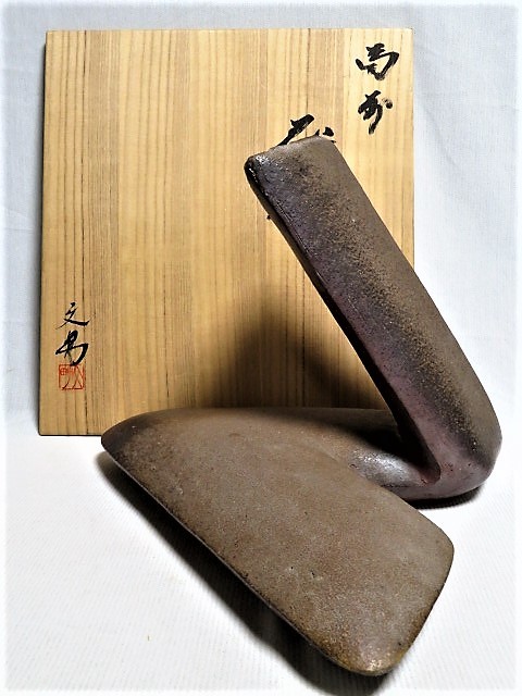 - 備前焼 大花入 川端文男 共箱 大きさ約39cm×約32cm 高さ約29cm