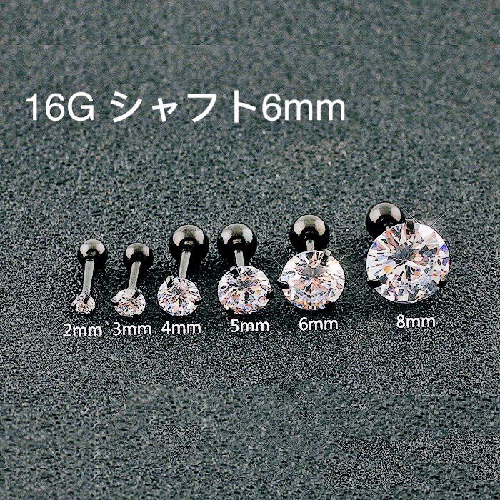 - 4mm1個 16G ブラック 立爪 CZダイヤ ジュエル ストレートバーベル