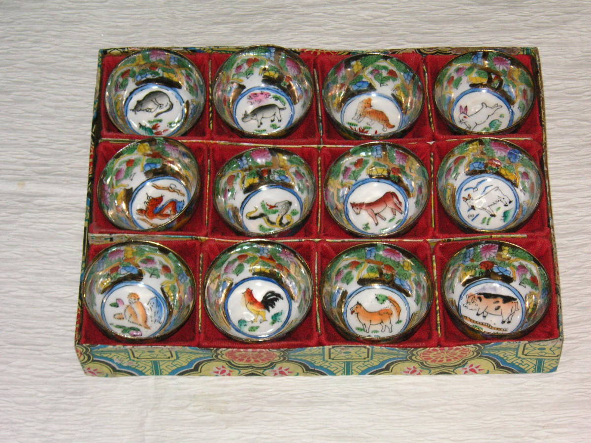 - 景徳鎮製 猪口12客 干支 未使用(2020429)