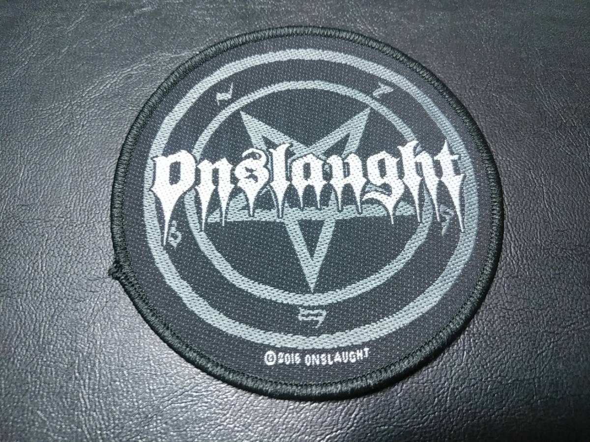 - ONSLAUGHT 丸形刺繍パッチ ワッペン / slayer sacrilege varukers discharge disorder chaos uk doom amebix broken bones