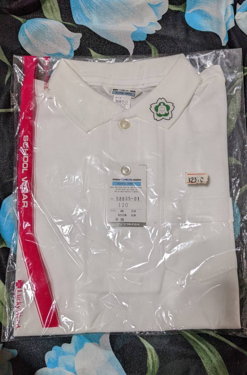 > 未使用 制服ポロシャツ 校章 半袖 120サイズ 希少 デットストック