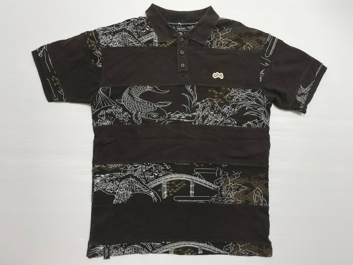 - エルアールジー LRG roots and equipment 半袖ポロシャツ 和柄 ロゴボタン 石瀬4501