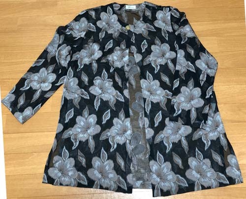 - 【送料無料】日本製◆ブラウス・ジャケット◆はおり◆Aライン◆L【ユーズド】黒地に大花の柄★冷房よけ・日焼け防止にも!シャツブラウス