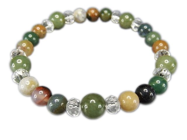 - 濃い目本ひすいジェダイト約8mm弱モスアゲート約6.5mm天然石ブレスレットプライム