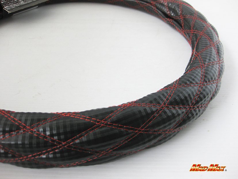 - 【送料800円】トラック用品 国産 スクエア ブラック/レッド ダブルステッチ ハンドルカバー 2HMサイズ/ステアリング