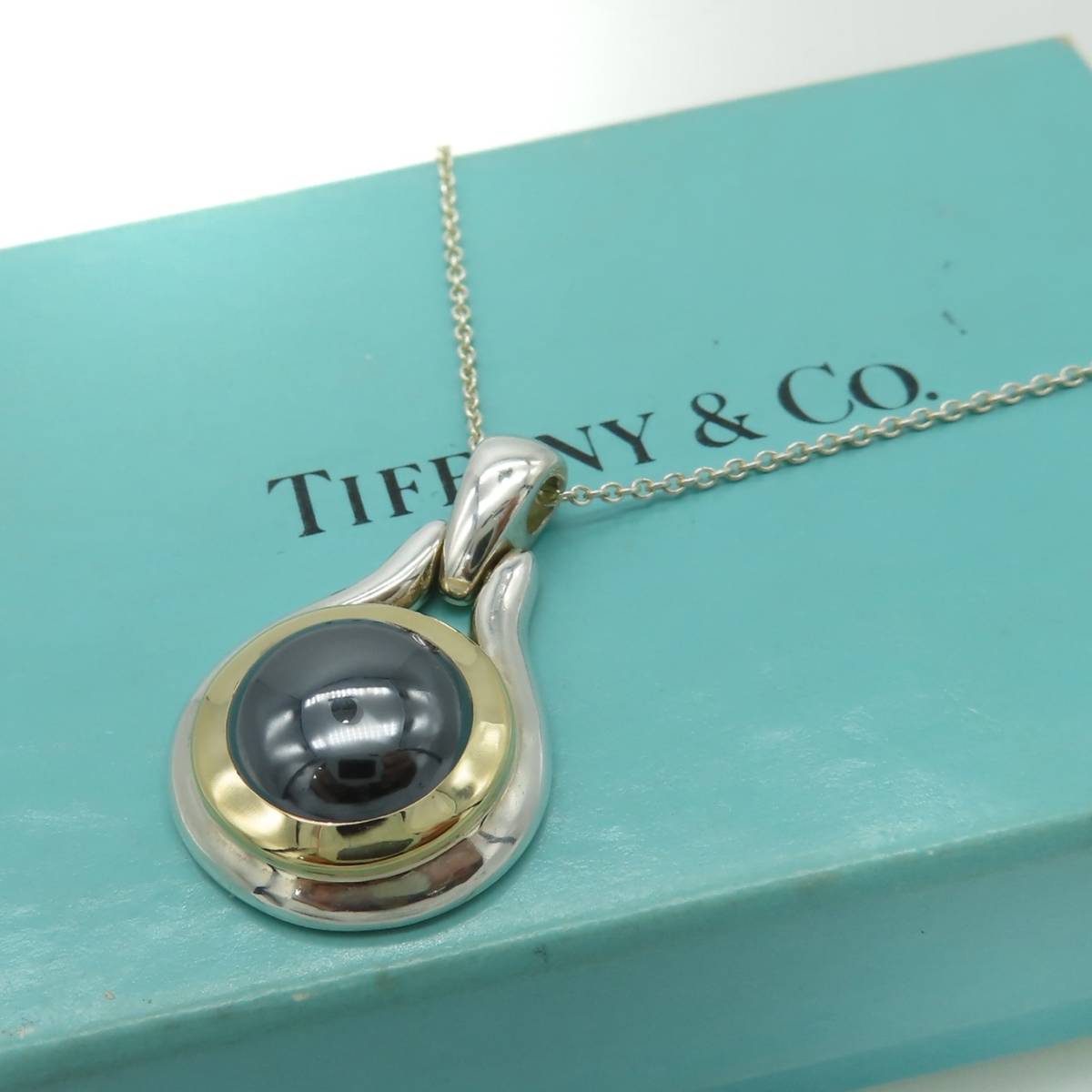 > 希少 美品 Tiffany&Co. ヴィンテージ ティファニー ブラック ヘマタイト ゴールド シルバー ネックレス SV925 750 K18 QQ68