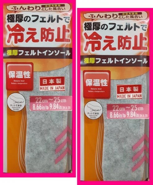 - 【送料無料:インソール:2足:冷え 防止:保温効果】★メンズ:24-27cm or レディース:22-25cm:保温効果で足元ポカポカ:フリーサイズ