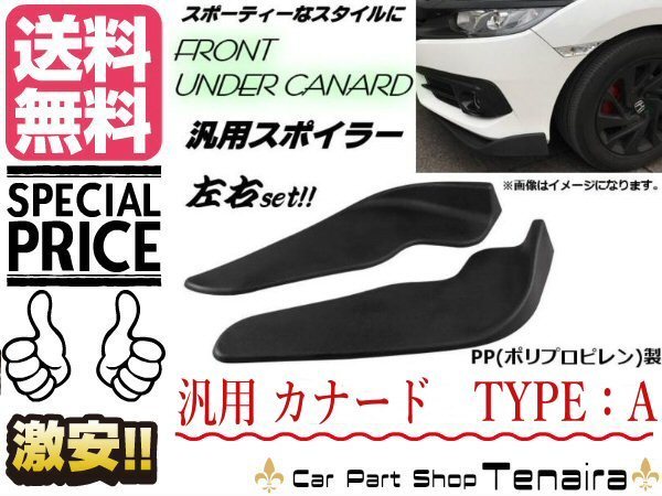 > 送料無料 汎用 PP製 カナード 左右セット Aタイプ 艶消し黒 マットブラック アンダー リップ スポイラー ディフューザー エアロ 送料無料/2