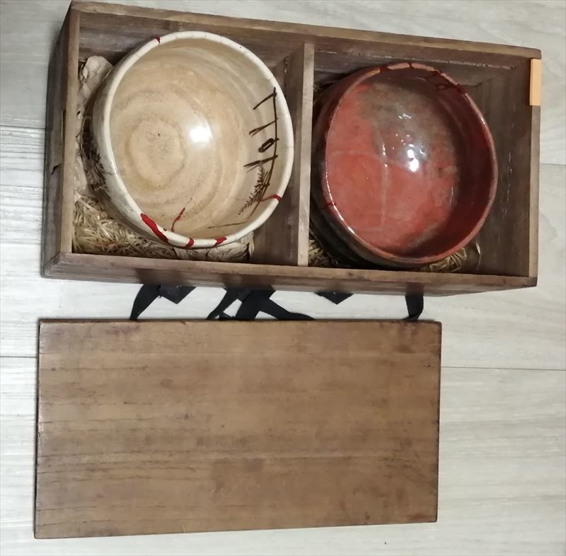 楽茶碗 2個 十二代楽吉左衛門(弘入)造 松絵 赤茶碗 茶道具 保証品