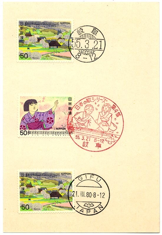 - ★絵入りハト印付ハガキ-5:1980 日本の歌シリーズ第4集(春の小川・さくらさくら)★(16.04.26)