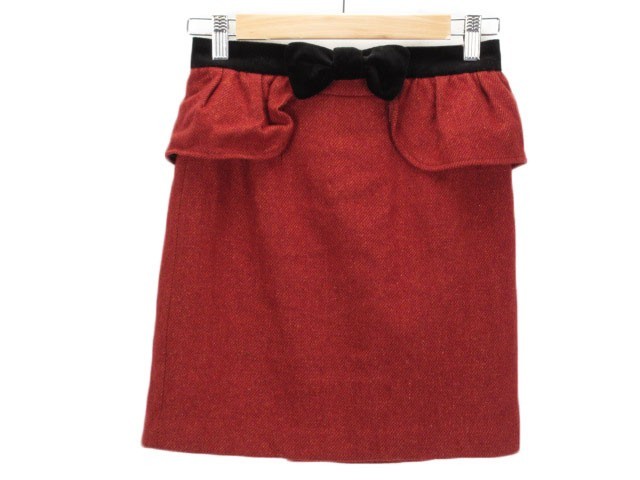 > リランドチュール Rirandture スカート タイト ペプラム リボン ベルト ラメ モヘヤ アンゴラ アルパカ 1 赤 レッド レディース