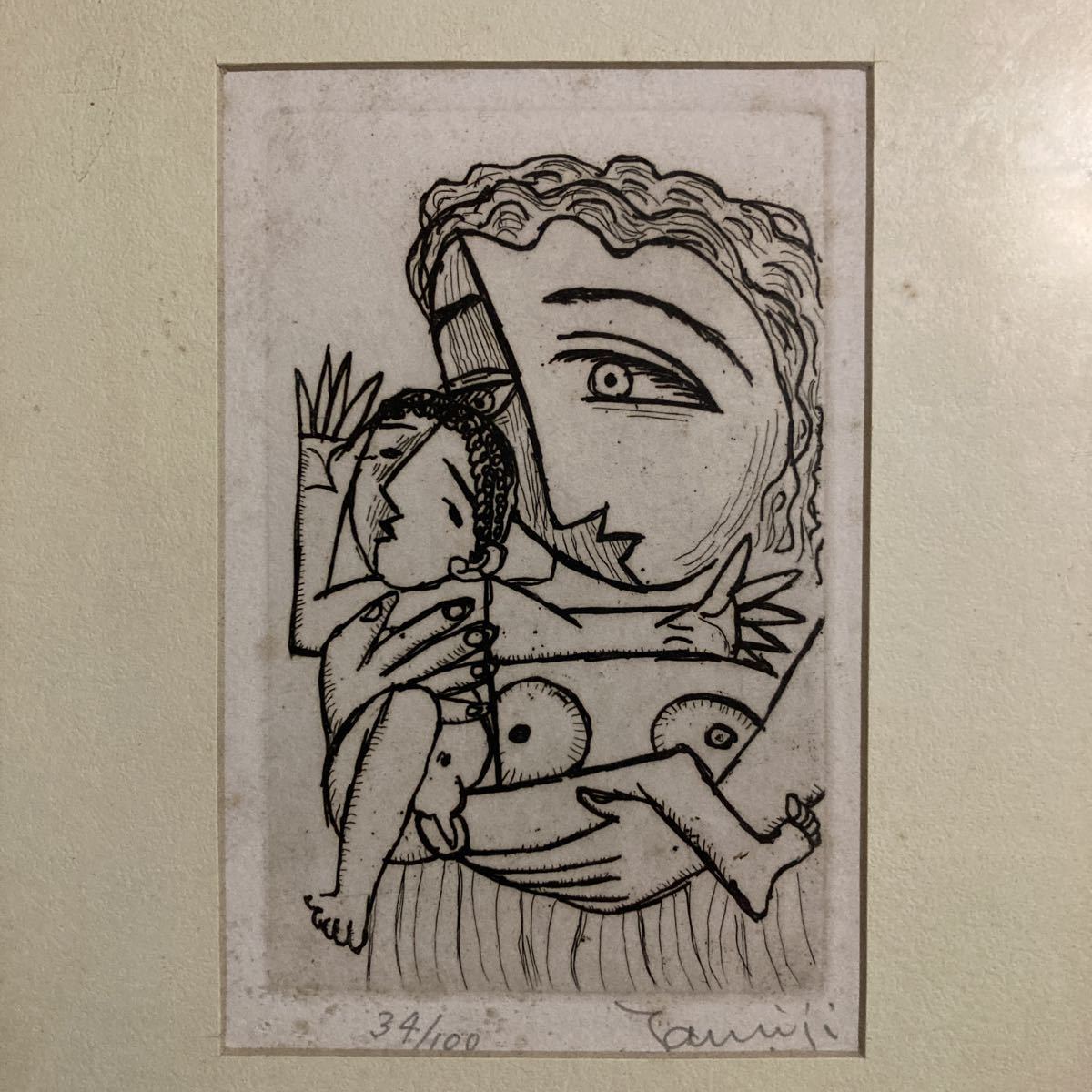 > アンティーク.北川民次 .原作銅版画.裸かの子と母.名前.サイン入り .百部.三四枚目.額装.本物保証.横幅.約25.1cm縦.約29.2cm.額の厚さ9cm.