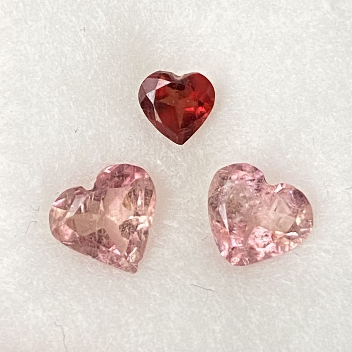 - ガーネット ピンクトルマリン ハートシェイプ ルース 3pc セット