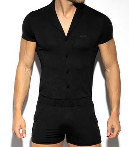 > EScollection/イーエス・コレクション SLEEVES BODY SUIT ボディスーツ シングレット 薄手 部屋着 Vネック ブラック Lサイズ