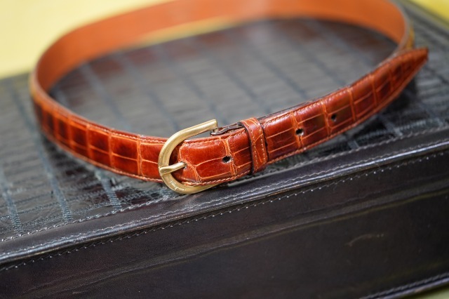 - 【フェラガモ】本物 Ferragamo 茶 総クロコダイル ベルト ワニ革 メンズ イタリア製