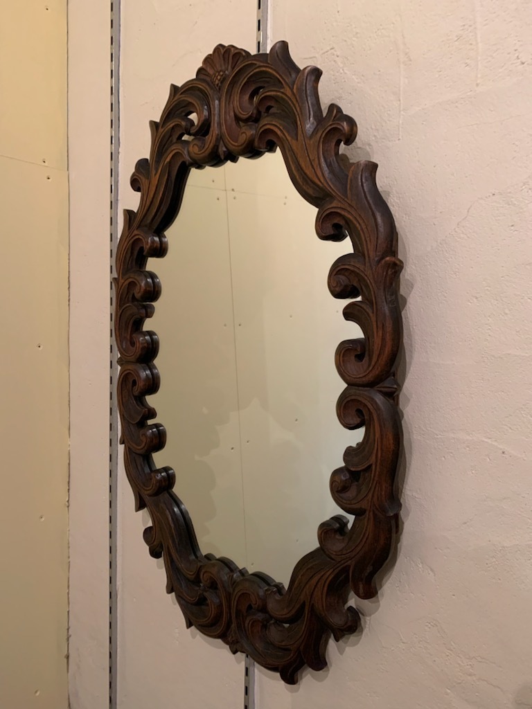- 鏡/ミラー/アンティークミラー/ウォールデコ/木製ウォールミラー/ビンテージ・ウッドフレーム