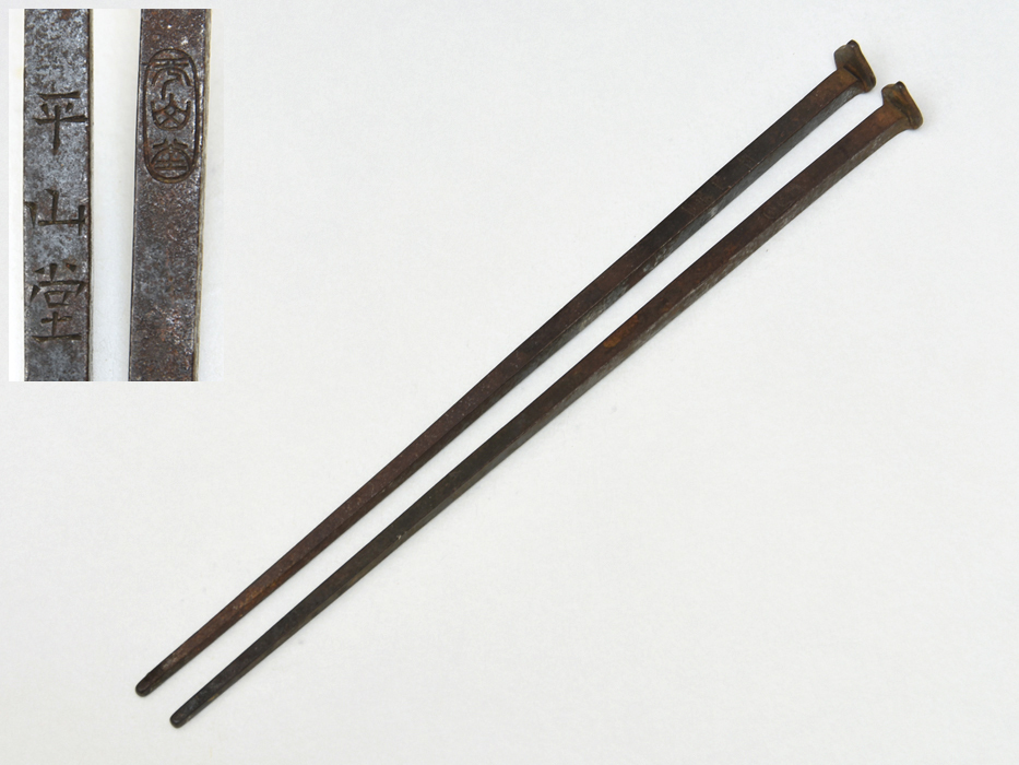 - 平山堂 鉄製釘形火箸 茶道具 煎茶道具 炭道具 灰道具 全長24㎝ 総重量102g 金属工芸 風炉用 z4115o