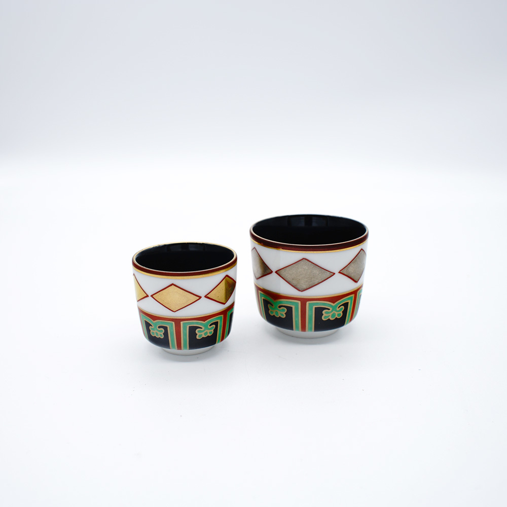 - 美濃焼! ZOHO ☆野々村仁清 色絵金銀菱ペアぐい呑☆ QP4 木箱入り 新品 酒盃 サカズキ 杯 盃 お猪口 片口酒器 日本酒 焼酎 ギフト