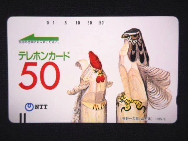 - テレカ 50度 笹野一刀彫 山形県 イラスト T-2429 未使用