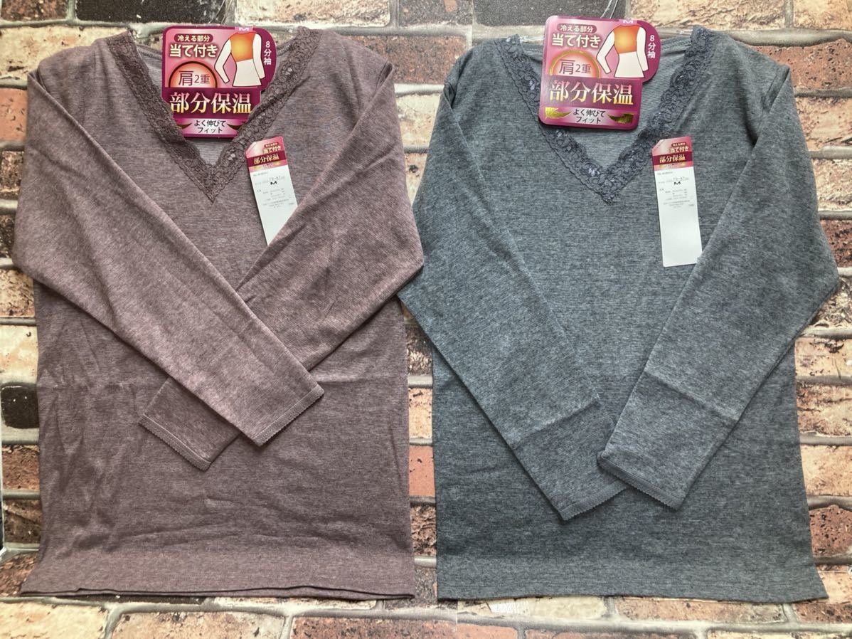- 送料無料!薄くても、いつまでもぽかぽか!背中部分二重当て付き 綿混8分袖レース付きインナー(2色から)1枚