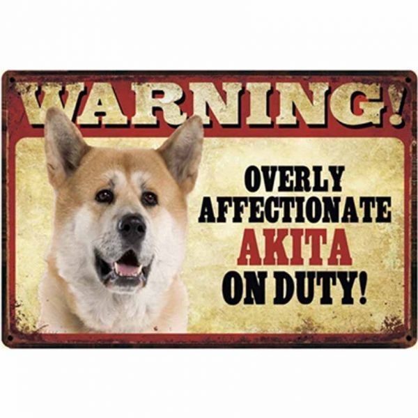 - A818 メタル サイン 金属 製 ブリキ 看板 プレート パネル 店 注意 警告 危険 防犯 威嚇 動物 ペット 猛 犬 秋田 犬【G