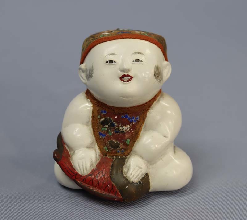 - ■即決■ 江戸時代 御所人形 高10cm 鯛持ち 頭巾被り つくね