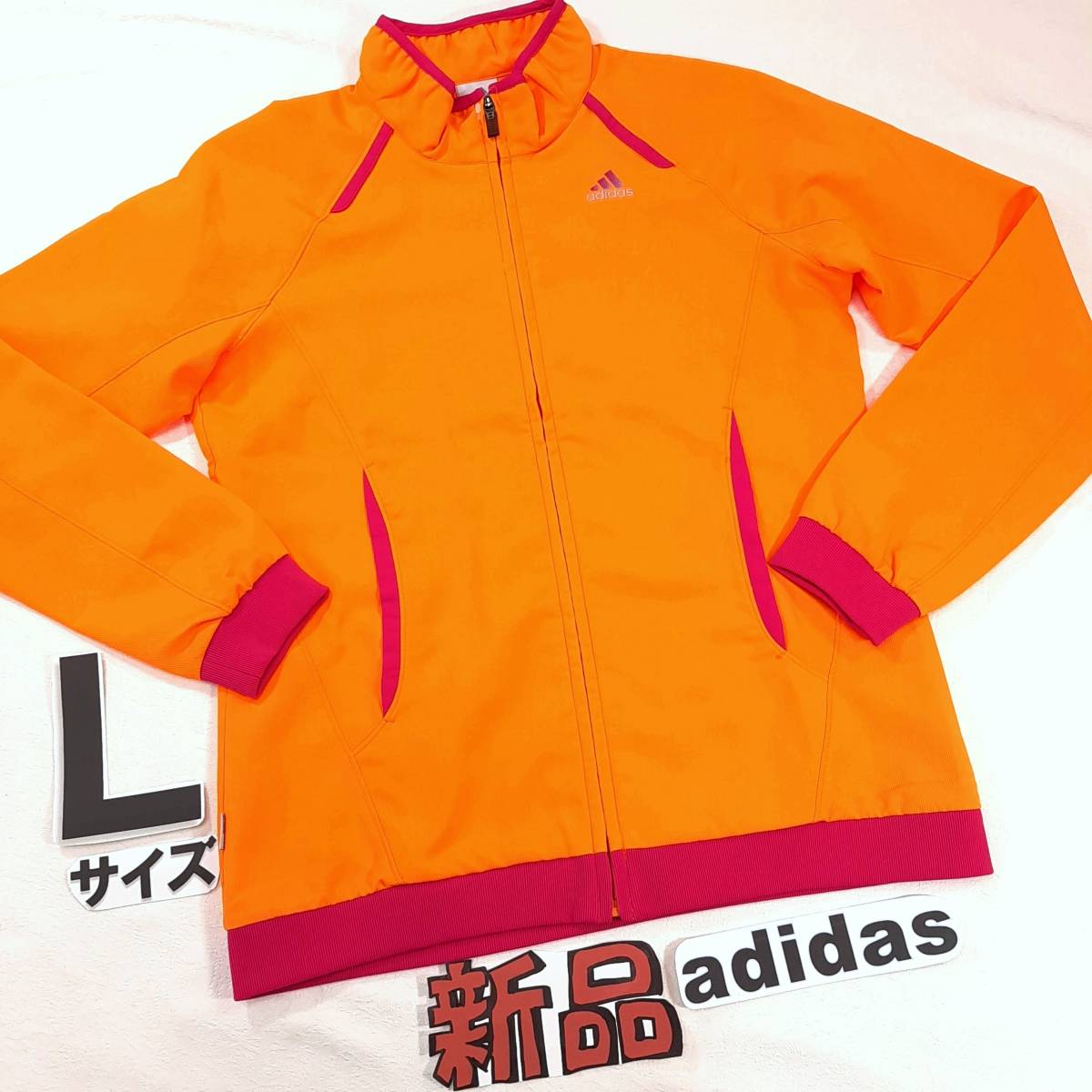 > b6新品★送料無料★adidas アディダス★吸湿速乾ドライ生地 フルジップライトジャケット 薄手★レディースLサイズ オレンジ色スポーツジム