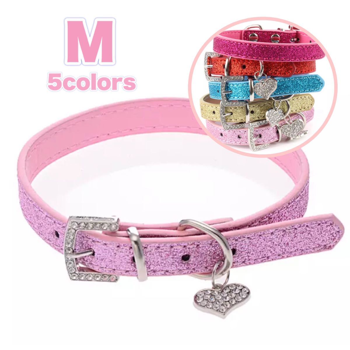- 犬 首輪 クリスタル ハート型 ラメ首輪 M dog 中型犬 おしゃれ かわいい お出かけ