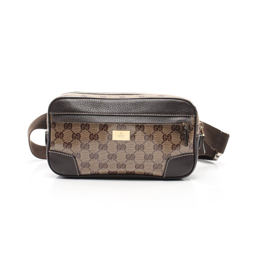 - 新品 GUCCI グッチ クリスタル GG メタルプレート PVC 加工 レザー 切替 ボディバッグ イタリア製 ミニショルダーバッグ メンズ バック 鞄