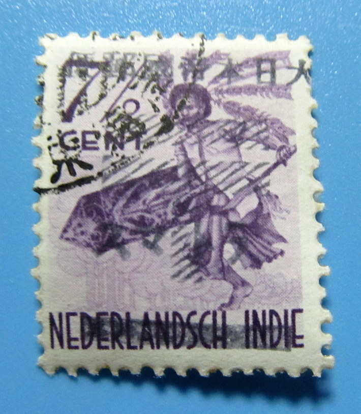 - 南方占領地 切手★オランダ領インド 7 1/2c 大日本 加刷 東海岸 印 スマトラ ヒンジ跡 丸まり 使用済み
