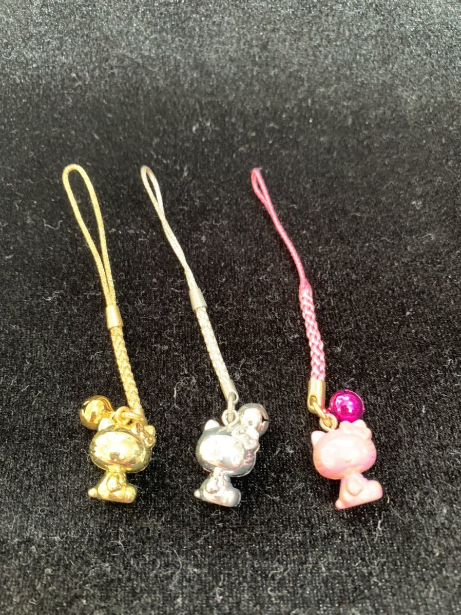 - 横座りキティゴールド・シルバー・ピンクの根付け