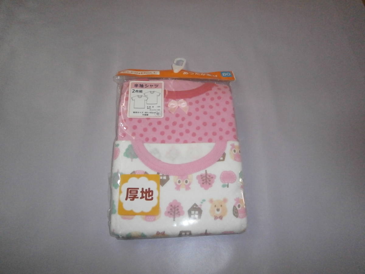 > 即決★新品★女児女の子★あったか素材★半袖シャツ★2枚組★サイズ80★④ピンク水玉ドットくま木★肌着下着インナーシャツタンクトップ