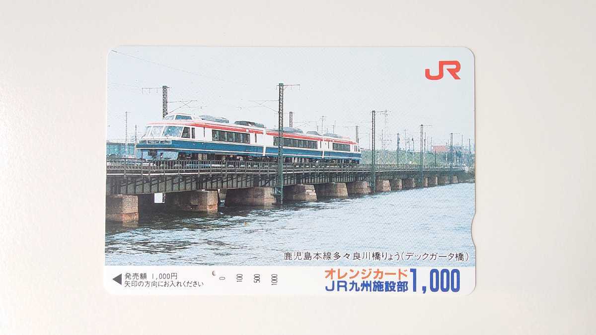 - ▽▽JR九州▽鹿児島本線多々良川橋りょう▽記念オレンジカード1000円券1穴使用済