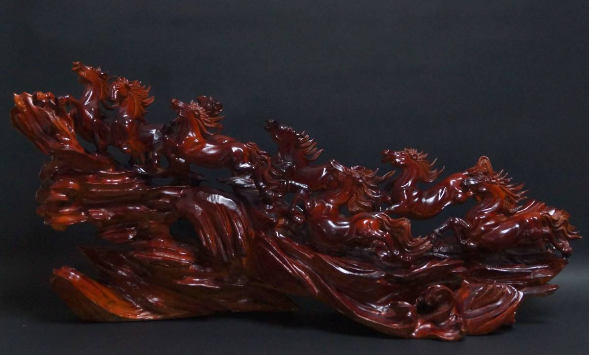 - 【閑】大型木造 荒彫り 『八頭馬 』一刀彫り 開運 縁起置物 重さ4.9kg★時代物★4D1207