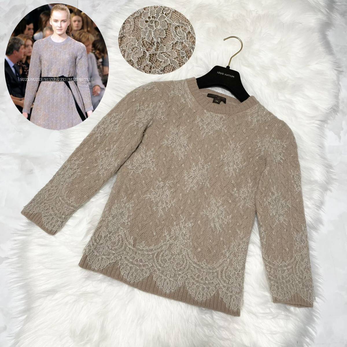 > 本物 ルイヴィトン 花柄 フローラル フラワーレース 七分袖 ニット セーター XS ベージュ系 ピンクグレー系 LOUIS VUITTON