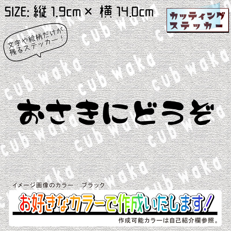 > おさきに横書①ステッカー 文字絵柄だけ残るカッティングステッカー・カブ・車・バイク・二輪・トラック・安全運転・リアボックス