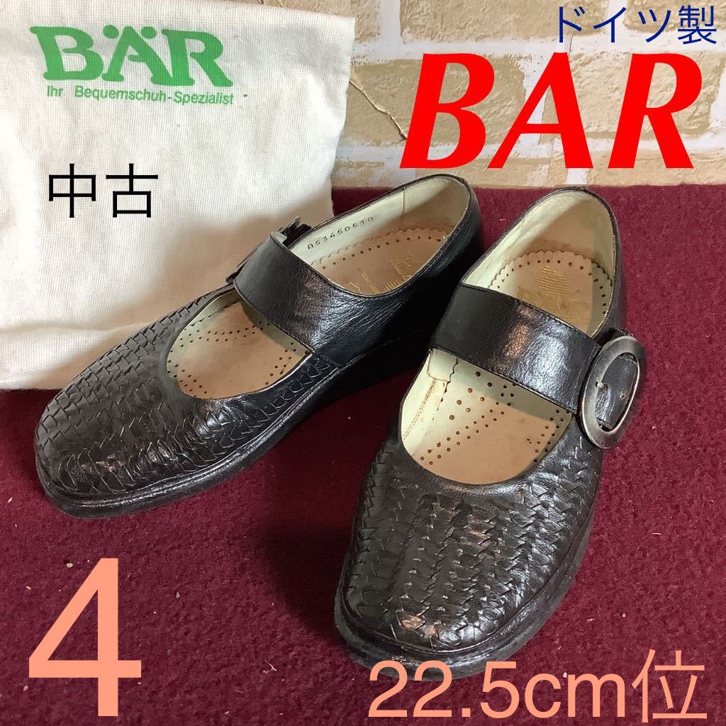 > 【売り切り!送料無料!】A-260 BAR!ローヒールパンプス!黒!4 22.5cm位!ベルト調節あり!ゴムあり!ドイツ製!収納袋あり!中古!