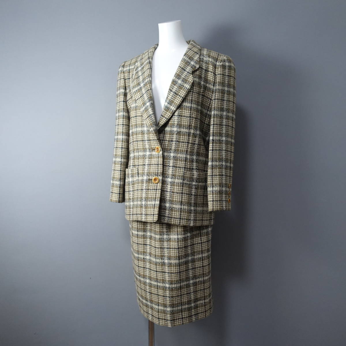 - 美品*Leilian/レリアン/9/フランス製/ウール100%(アルパカ40%)セットアップ/ブラウン×アイボリー/スーツ/ジャケット/スカート
