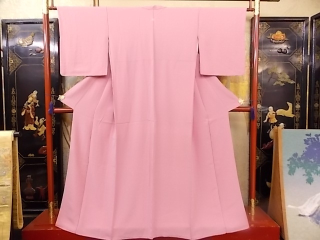 > きもの今昔4613 色無地きもの 正絹一越ちりめん ローズピンク色 問題点なく良い状態 身丈158cm