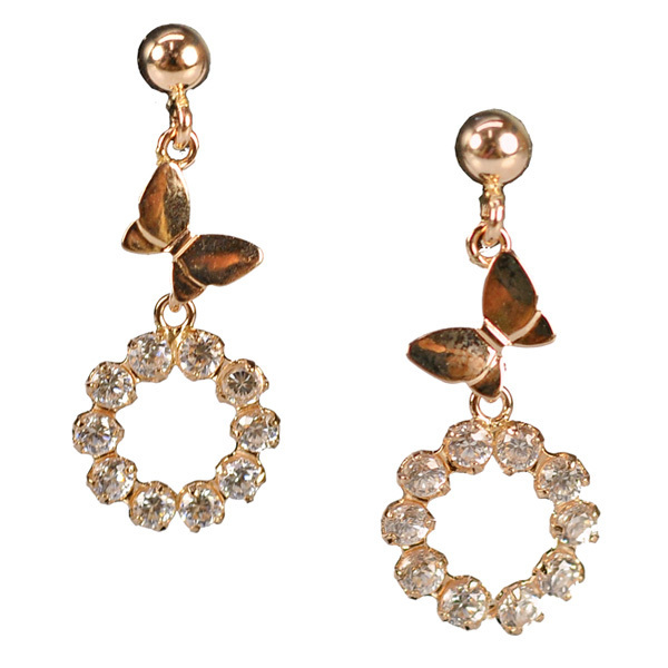 - K10ピンクゴールドピアス サークルデザインピアス キュービックジルコニア 蝶 10金 K10PG 10K
