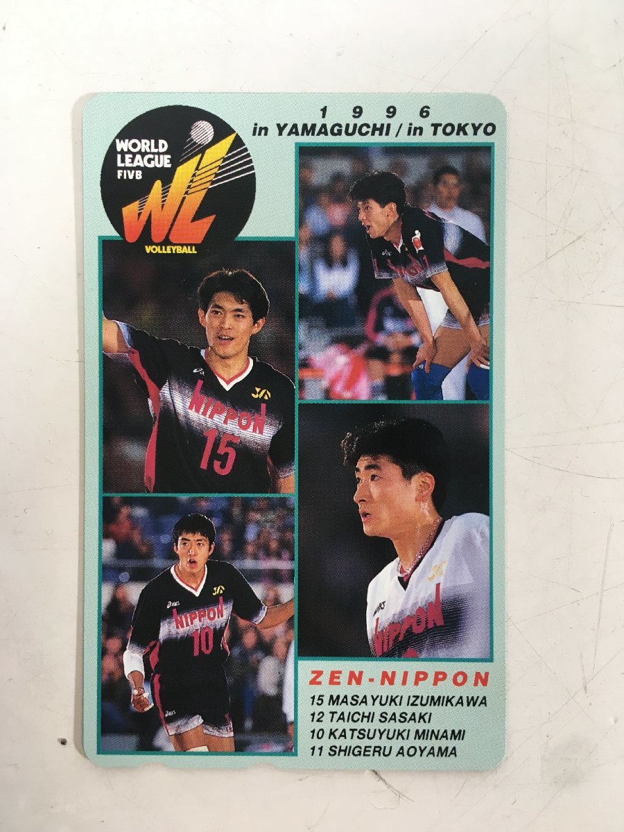 - テレホンカード テレカ 50度数 FIVB バレーボール ワールドリーグ 1996 泉川正幸 佐々木太一 南克幸 青山繁 未使用