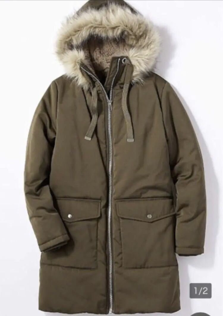 > 未使用 定価7549*バックナンバー ファー中綿 モッズコート ロング ダウンコート ダウンジャケット ミリタリーコート フード付き ライトオン