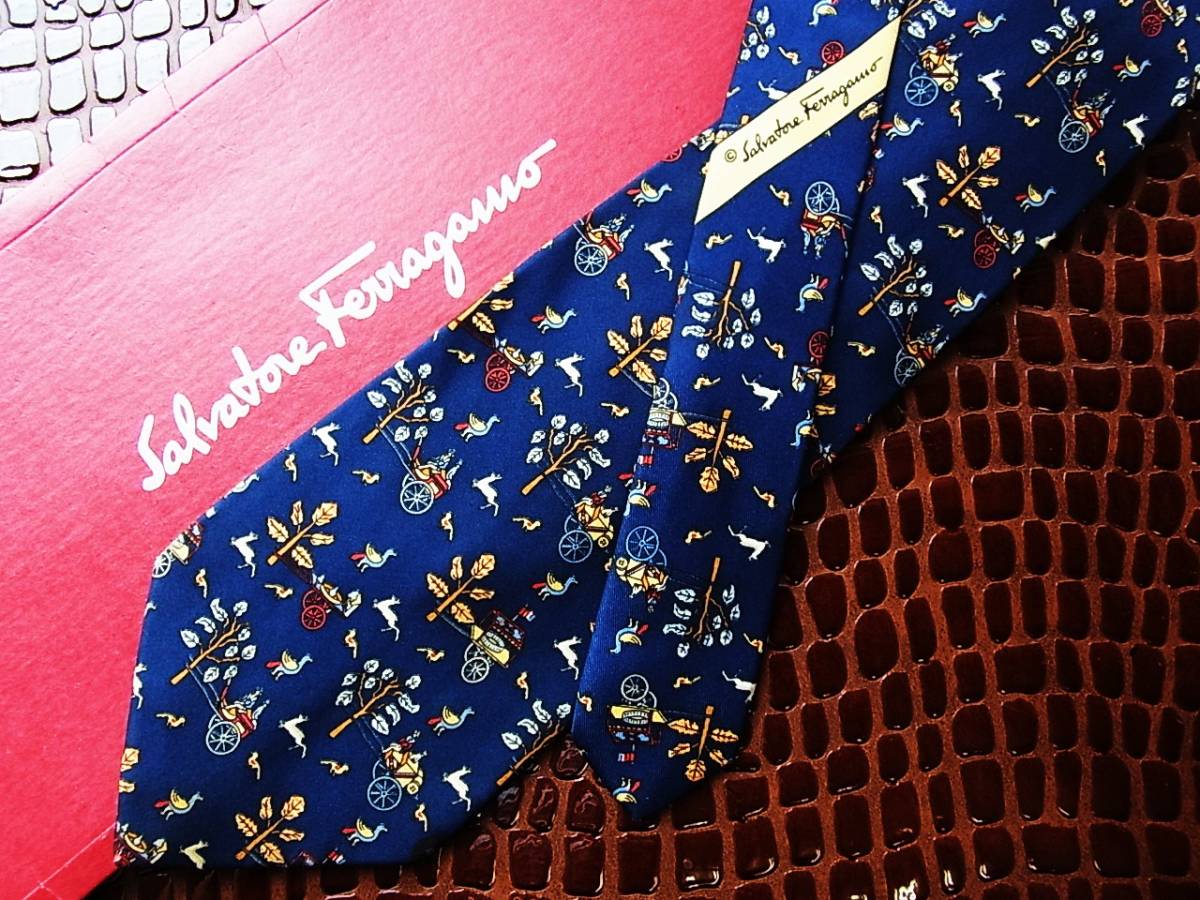 - ◇E1585R◇在庫処分SALE●【木・動物・トリ・鳥】フェラガモのネクタイ