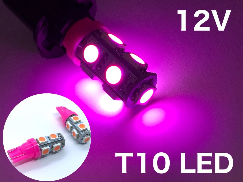 - 12V用 T10 ウェッジ LED 9連 ピンク パープル 2個セット 3chip 5050