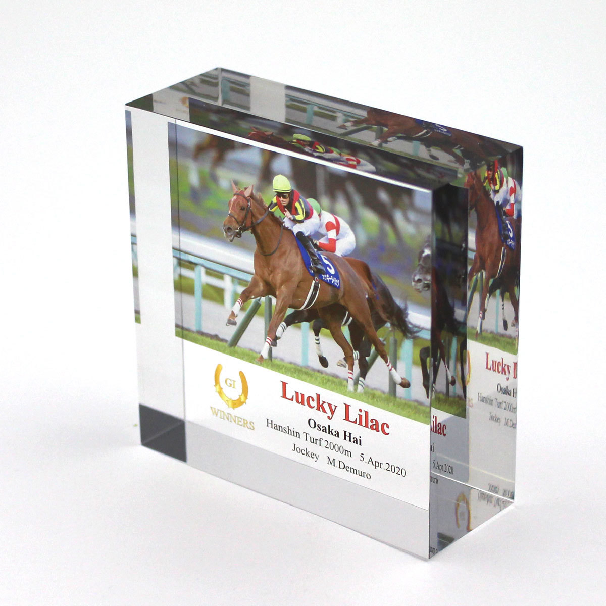 > 匿名送料無料 ☆★ラッキーライラック アクリルオブジェ 置物 縦8×横8㎝ ★大阪杯 GⅠ優勝 JRA 阪神競馬場 M.デムーロ / 2020.4.5 即決!