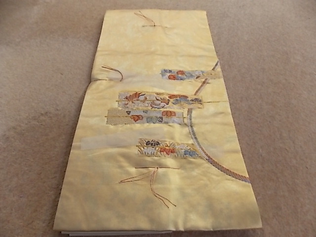 - きもの今昔4689 名古屋帯 西陣織金箔地 横短冊唐織り柄出し 新品仕立て 閉じシツケしてます