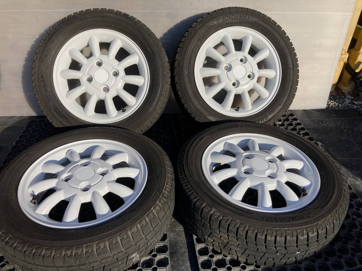 - 【塗装品】スズキラパン純正13インチホイール スタッドレスタイヤ付 4本セット 13×4B 45 PCD100 155/65R13 【中古/埼玉より発送】