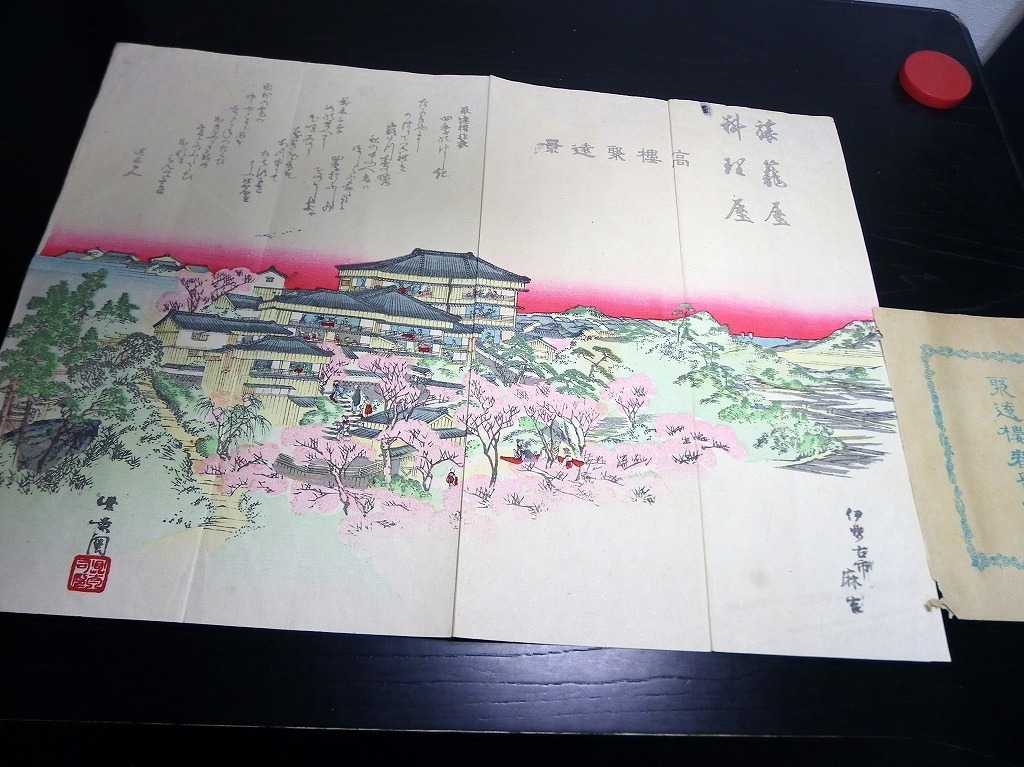 - ★0204明治期木版画「聚遠楼春景図」1点/袋付き/伊勢古市麻吉/古書古文書/木版摺り/浮世絵