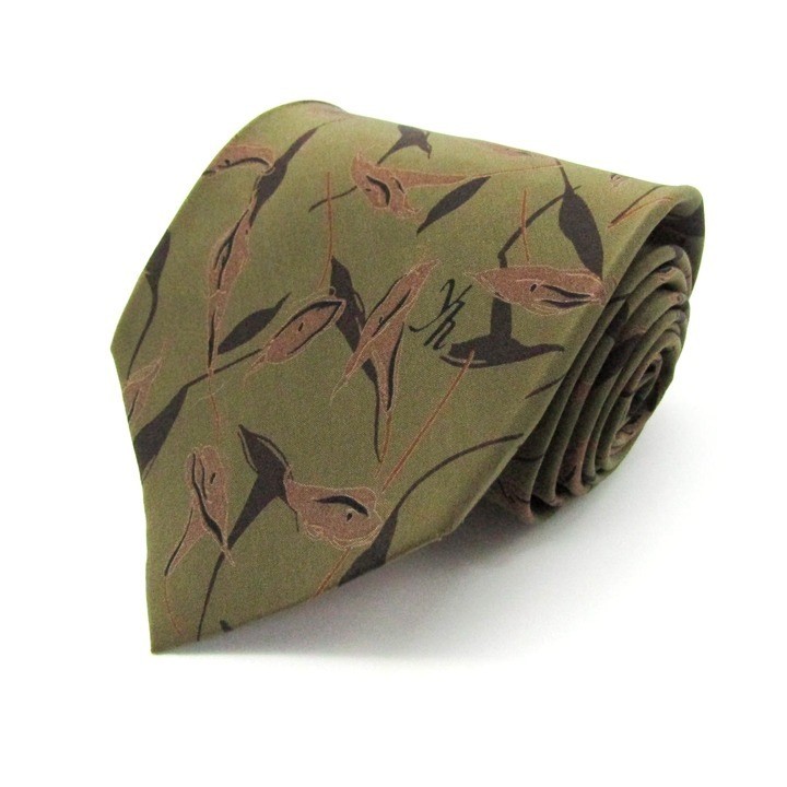 - ユキコハナイ ボタニカル柄 シルク ブランド ネクタイ メンズ ブラウン系 良品YUKIKO HANAI