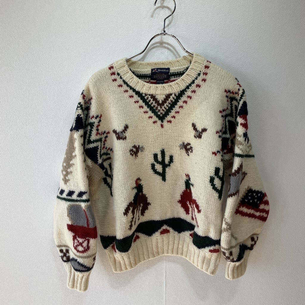 - KENNETH GORDON/ケネス ゴードン セーター メンズL 白/ホワイト ニット 遊牧柄 珍しい逸品 ウール100%K2695
